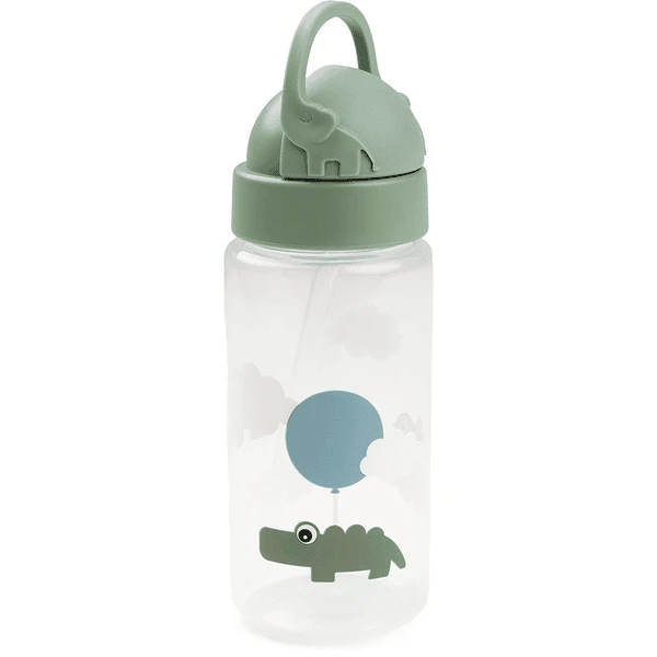 Done by Deer™ Trinkflasche mit Strohhalm Happy clouds Grün