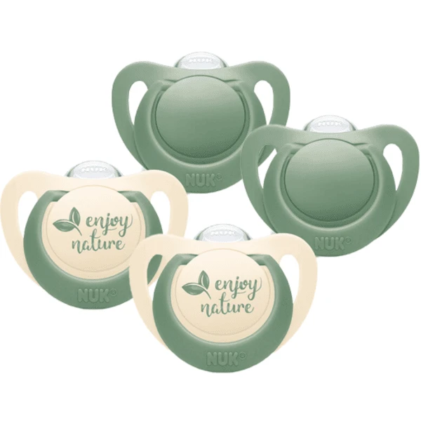 NUK Schnuller for Nature Silikon 0 bis 6 Monate, grün im Viererpack
