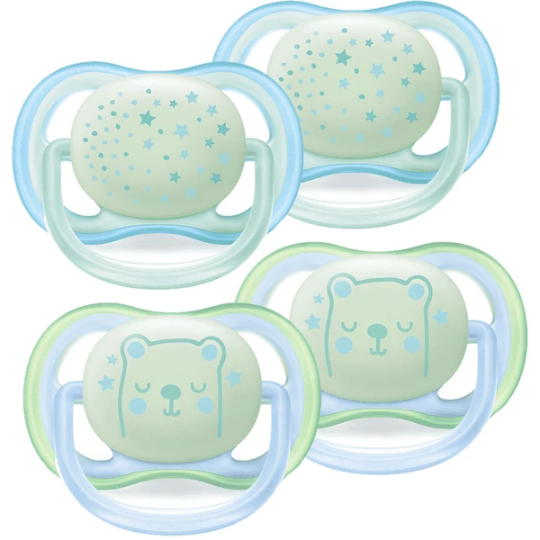 Mit dem im Dunkeln leuchtenden Knopf des ultra air findest du den Schnuller