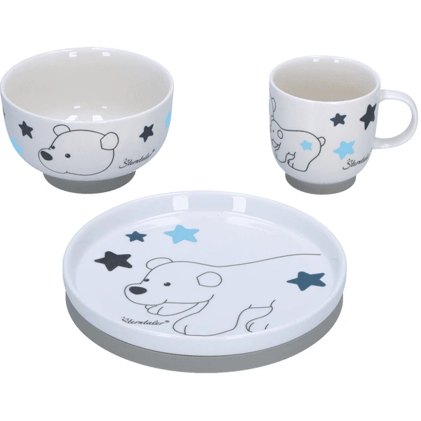 - Porzellan-Geschirr-Set bestehend aus Tasse, Schüssel und Teller